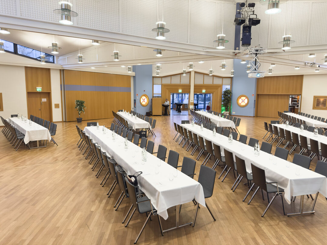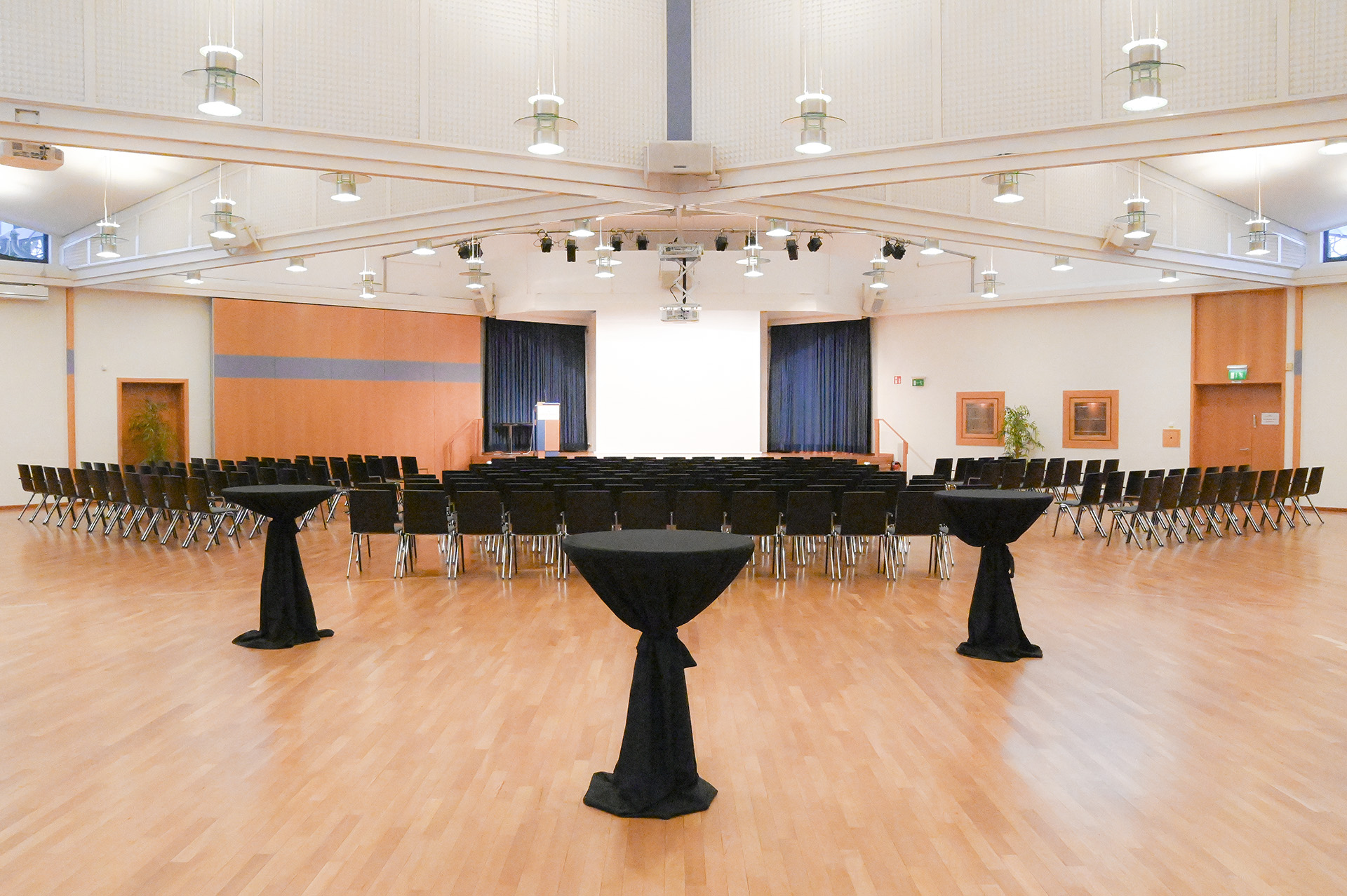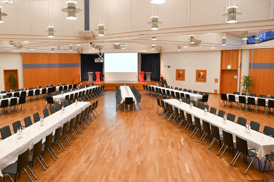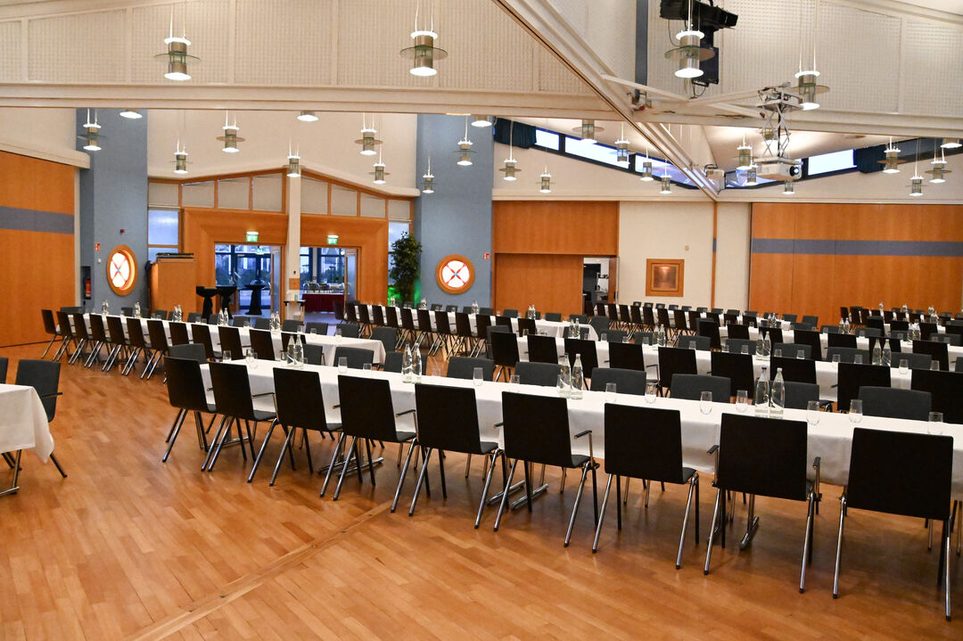 Die Möglichkeiten reichen von einer kleinen Bankettbestuhlung in einem der abgeteilten kleineren Säle, bis zu einer großen Reihenbestuhlung mit bis zu 600 Plätzen im großen Saal. Mit Sicherheit ist auch für Ihre Veranstaltung eine passende Möglichkeit dabei. Für kleinere Gesellschaften bietet sich auch unser Foyer als Veranstaltungsort an.