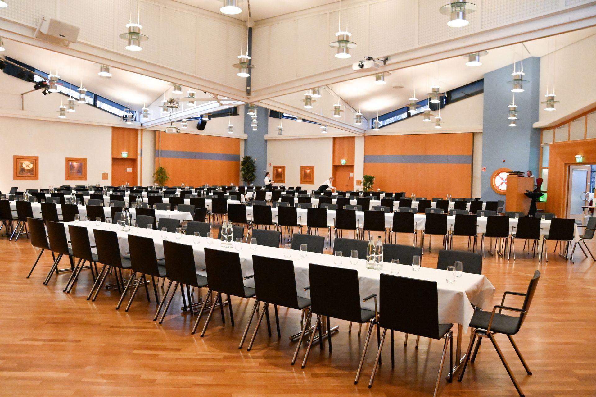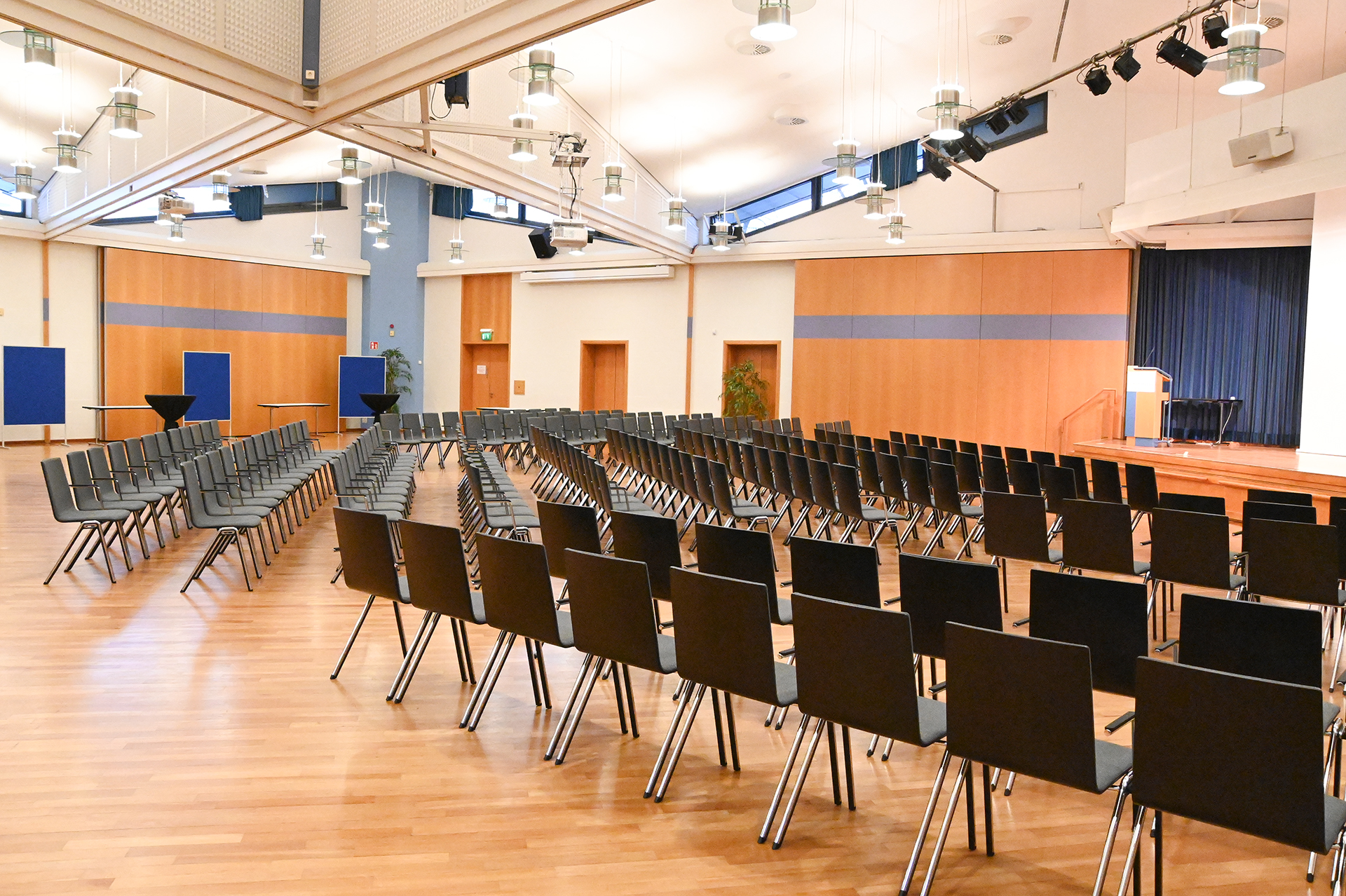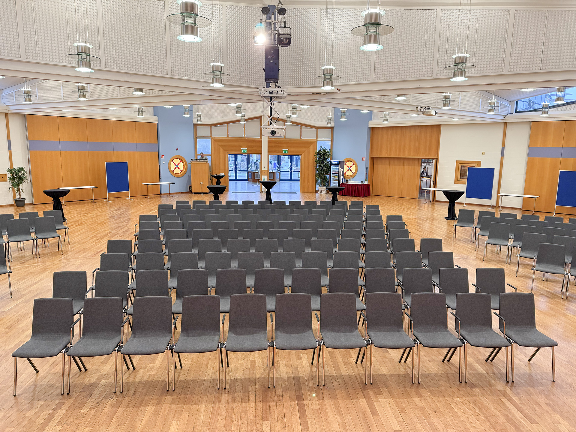 Die Möglichkeiten reichen von einer kleinen Bankettbestuhlung in einem der abgeteilten kleineren Säle, bis zu einer großen Reihenbestuhlung mit bis zu 600 Plätzen im großen Saal. Mit Sicherheit ist auch für Ihre Veranstaltung eine passende Möglichkeit dabei. Für kleinere Gesellschaften bietet sich auch unser Foyer als Veranstaltungsort an.